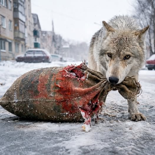 Из снежной пелены появилась тень. Огромная полярная волчица, больше похожая на призрак, чем на живое существо. Нижняя челюсть у неё была сломана и безвольно свисала, а зубы намертво впились в край грубого зелёного мешка. Разжать пасть она не могла — колючая проволока, стянувшая ткань, стала для неё ловушкой. Она двигалась к людям не за пищей — она тащила с собой спасение для того, кто находился внутри.