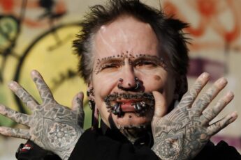 У мужчины на теле 560 пирсингов, множество татуировок и импланты на лбу: вот как он выглядел раньше