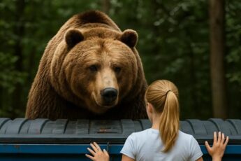 Медведица стояла возле мусорного бака и стучал по крышке своими тяжелыми лапами: я открыла бак и замерла от ужаса