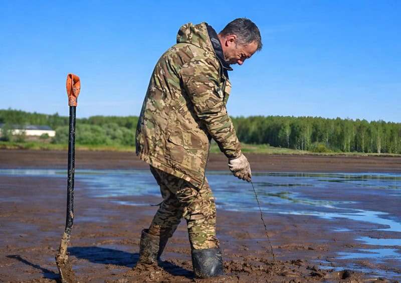 Мужчина сделал последний рывок, и находка наконец выскочила наружу. Он едва удержал её, чтобы она снова не упала в жижу.