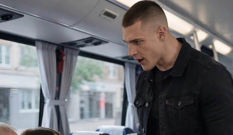 Когда в автобус зашла молодая пара, напряжение почувствовали сразу. Женщина держалась за поручень одной рукой, другой придерживала живот, глаза у неё были красные от слёз, а движения — неуверенные, словно она держалась из последних сил. Мужчина шёл за ней почти вплотную, не давая отойти ни на шаг, и в его голосе уже звучала злость.